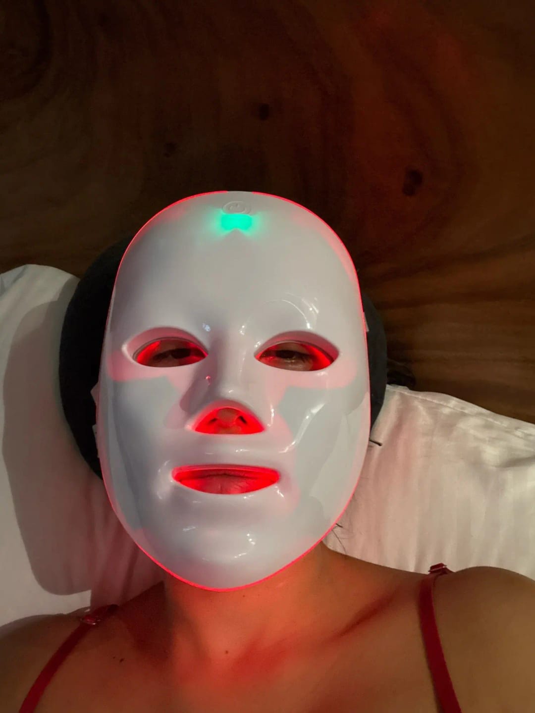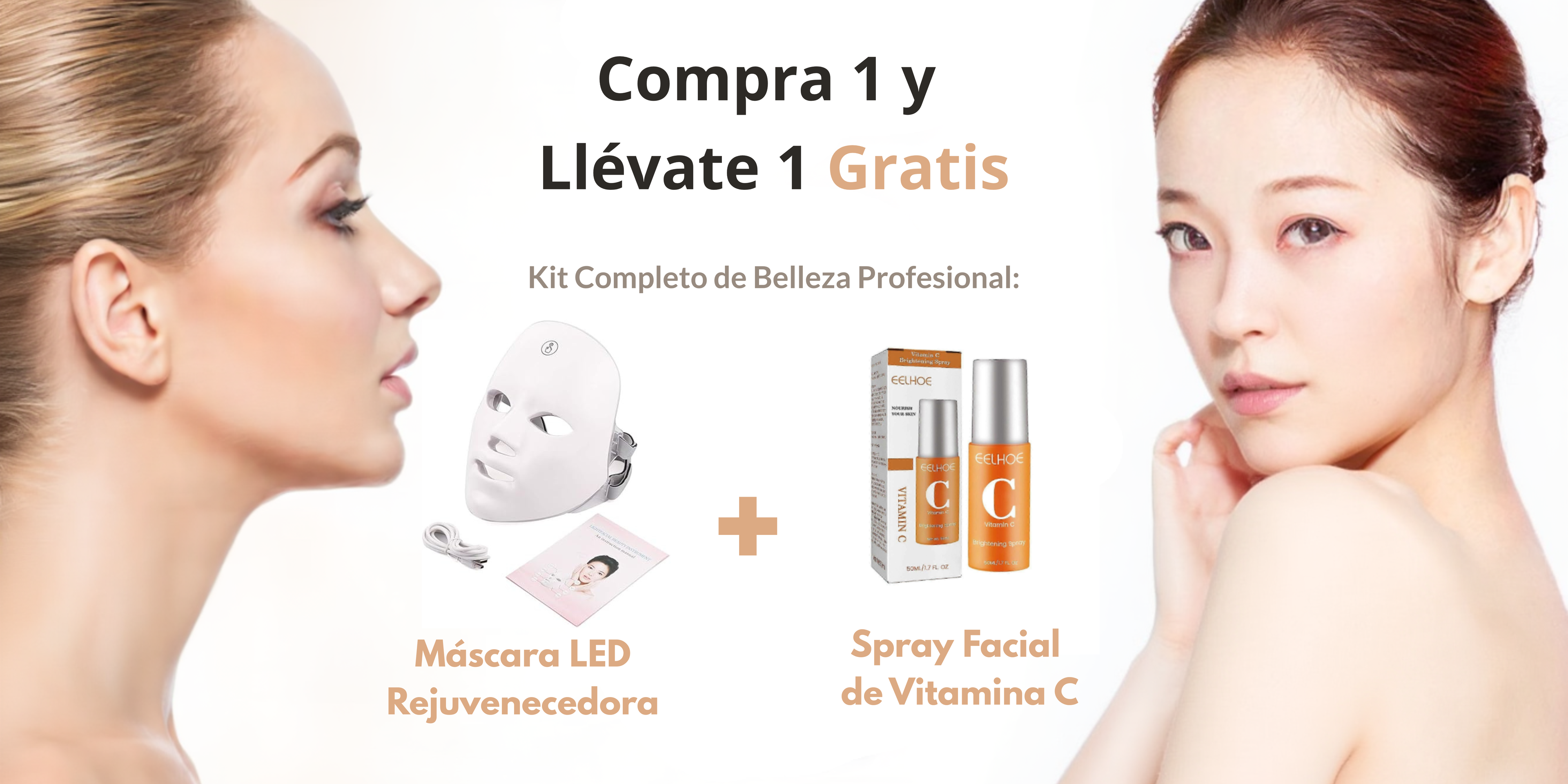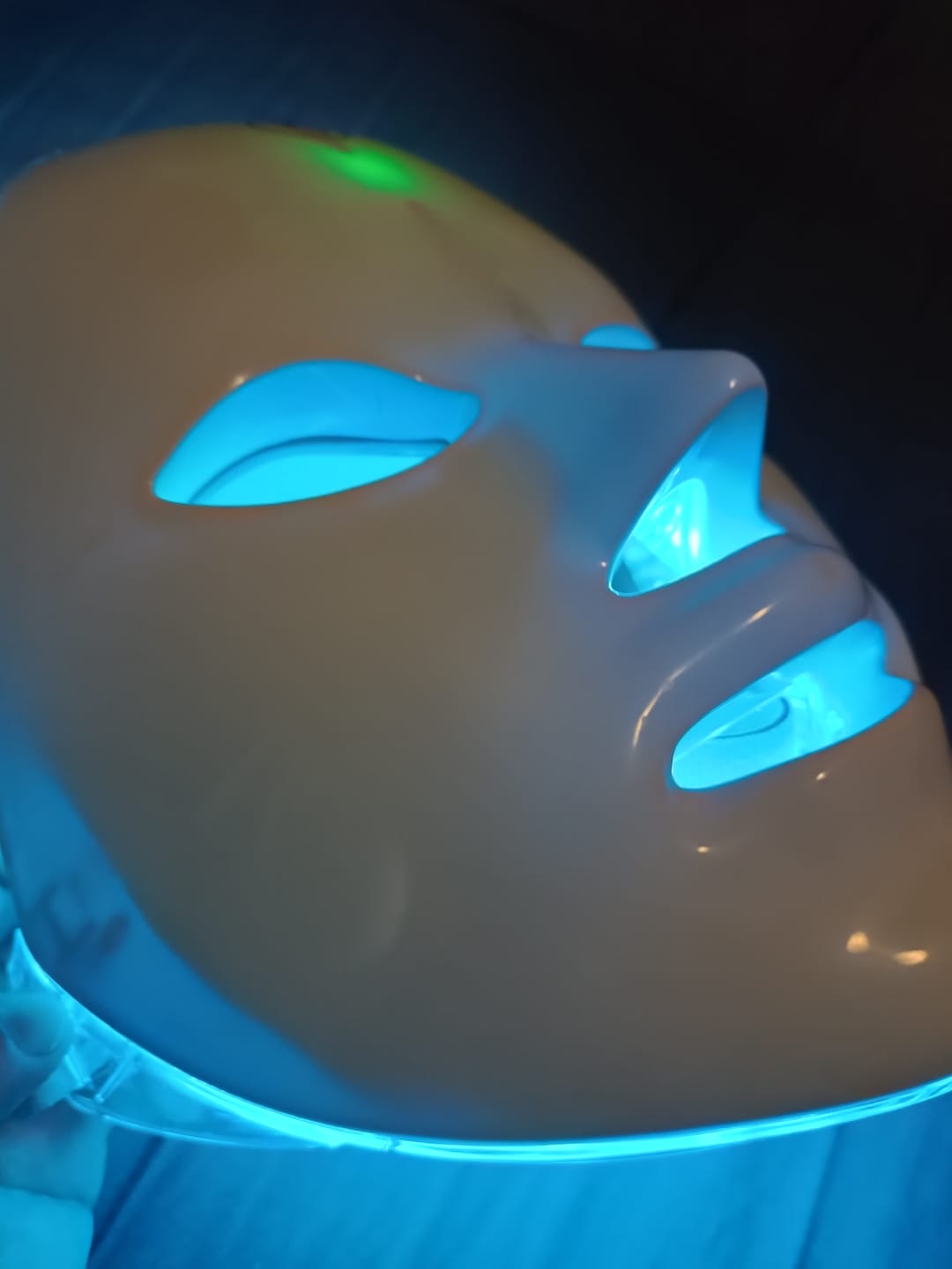 Terapia de luz LED rejuvenecedora con tecnología anti-edad y blanqueadora para resultados visibles en casa.